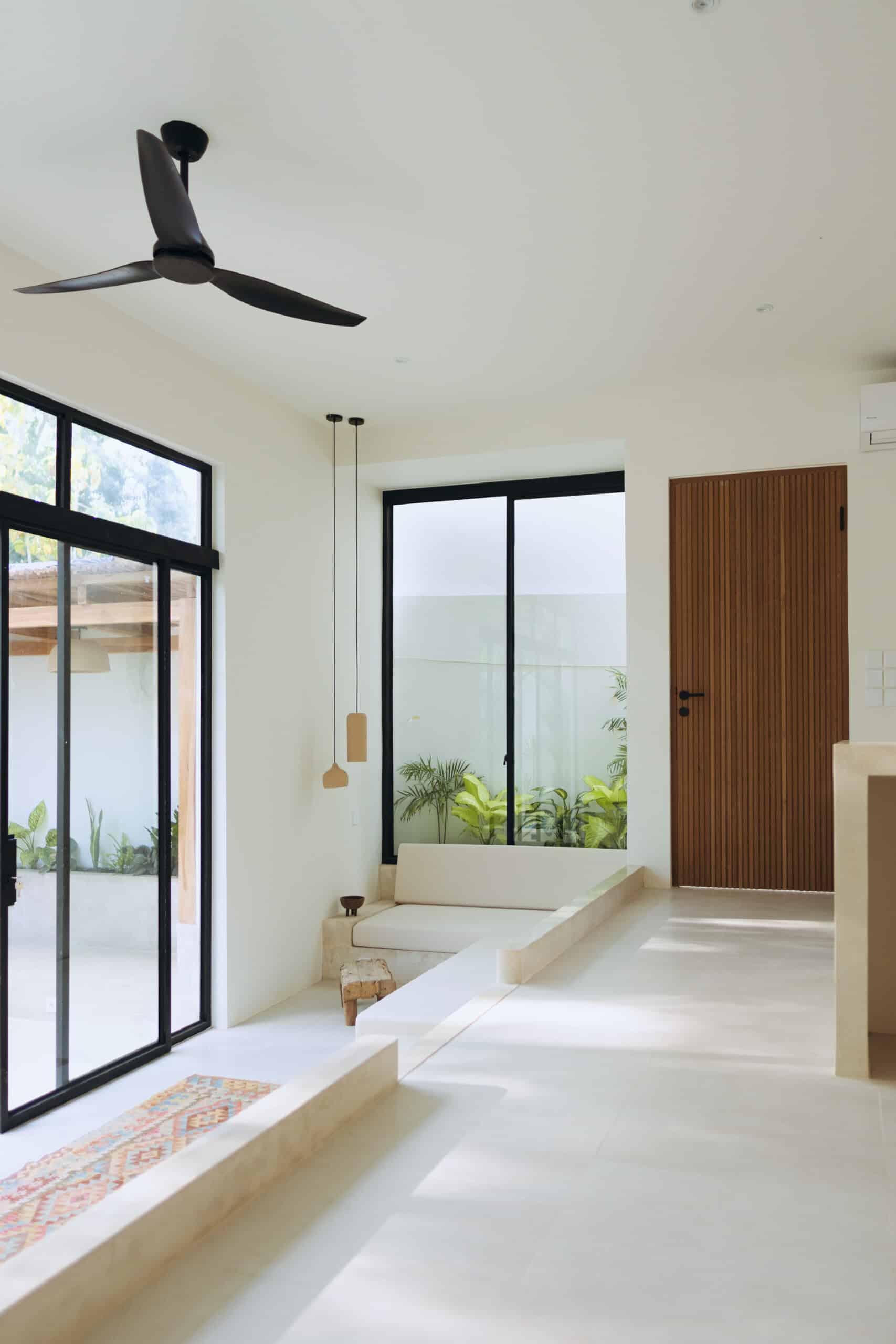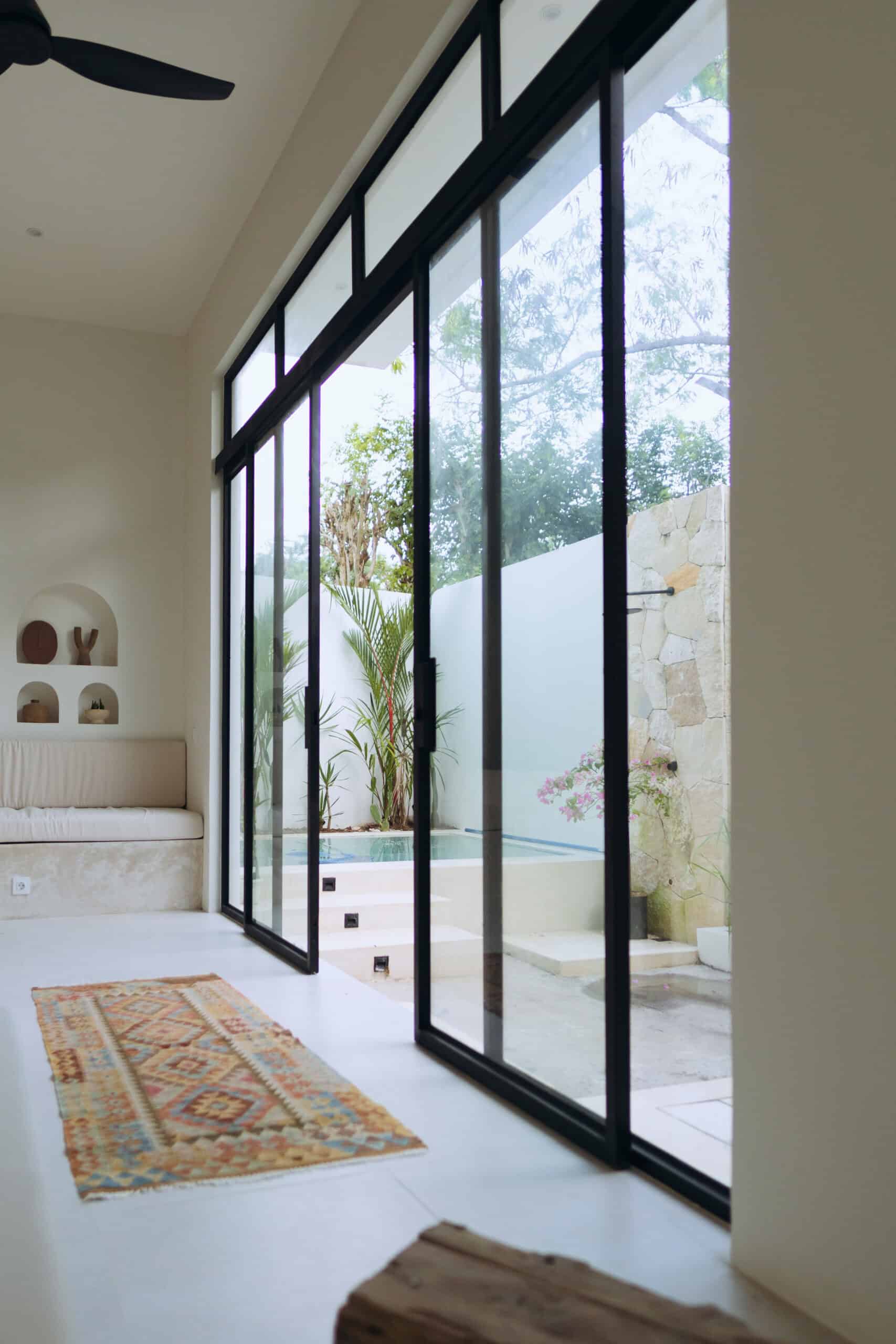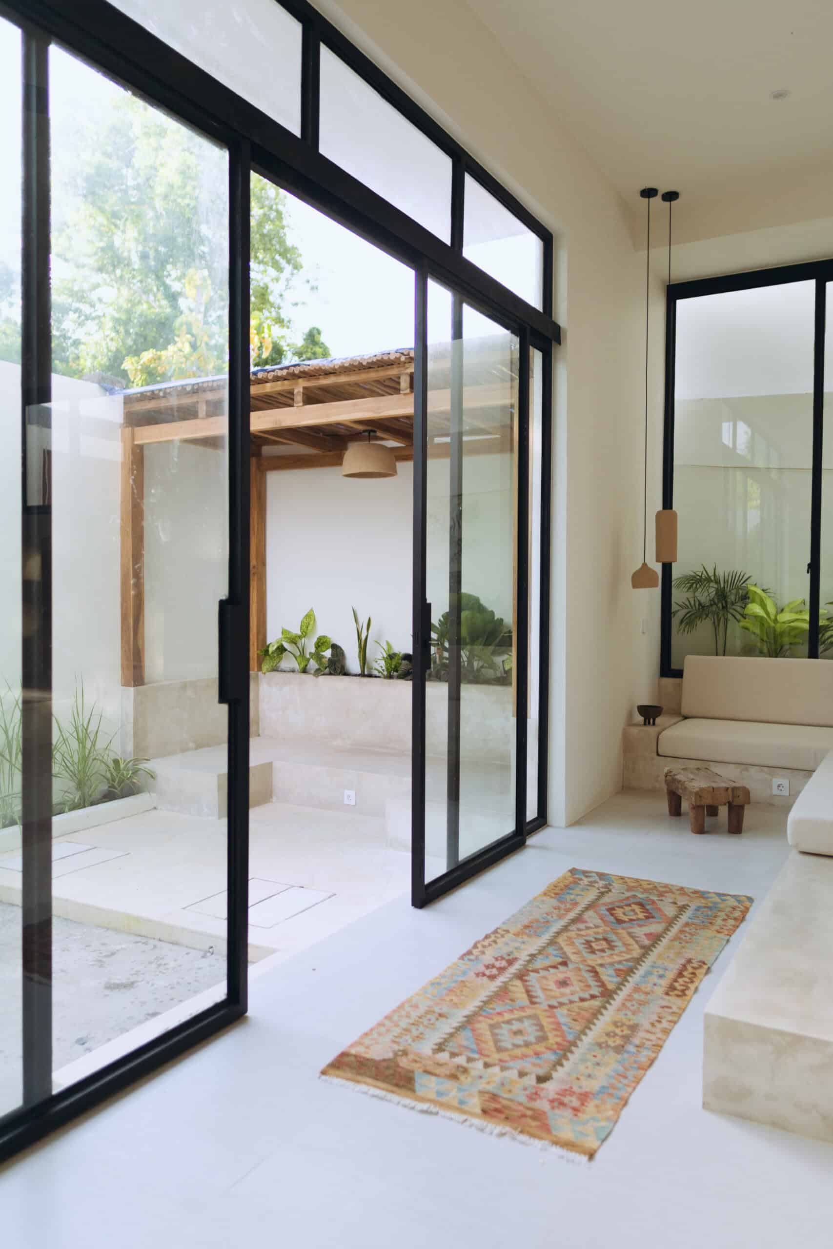 Sits on 100 sqm land size and 92 sqm building size, the bedroom and bathroom offer a seamless connection to the outdoor. Additionally, the villa features a cozy living room adorned with a sunken sofa lounge, creating a perfect spot for relaxation. The private plunge pool, enveloped by a charming small garden, completes the serene atmosphere, allowing guests to unwind in absolute tranquility.