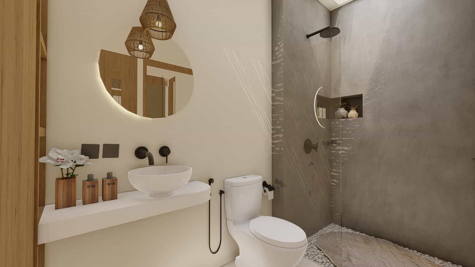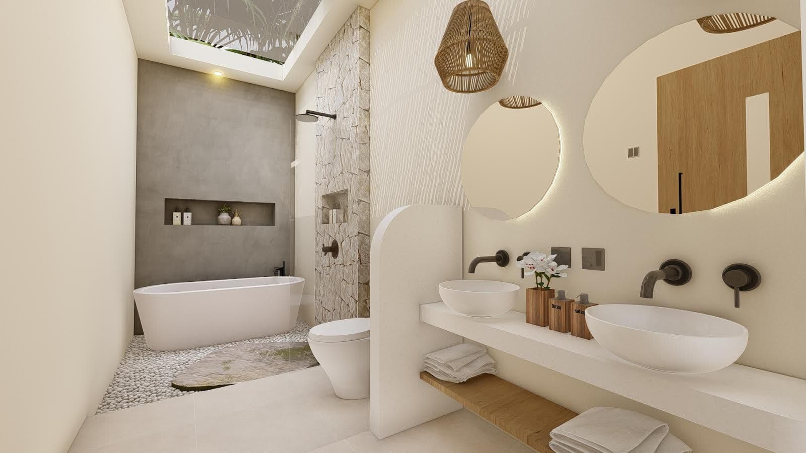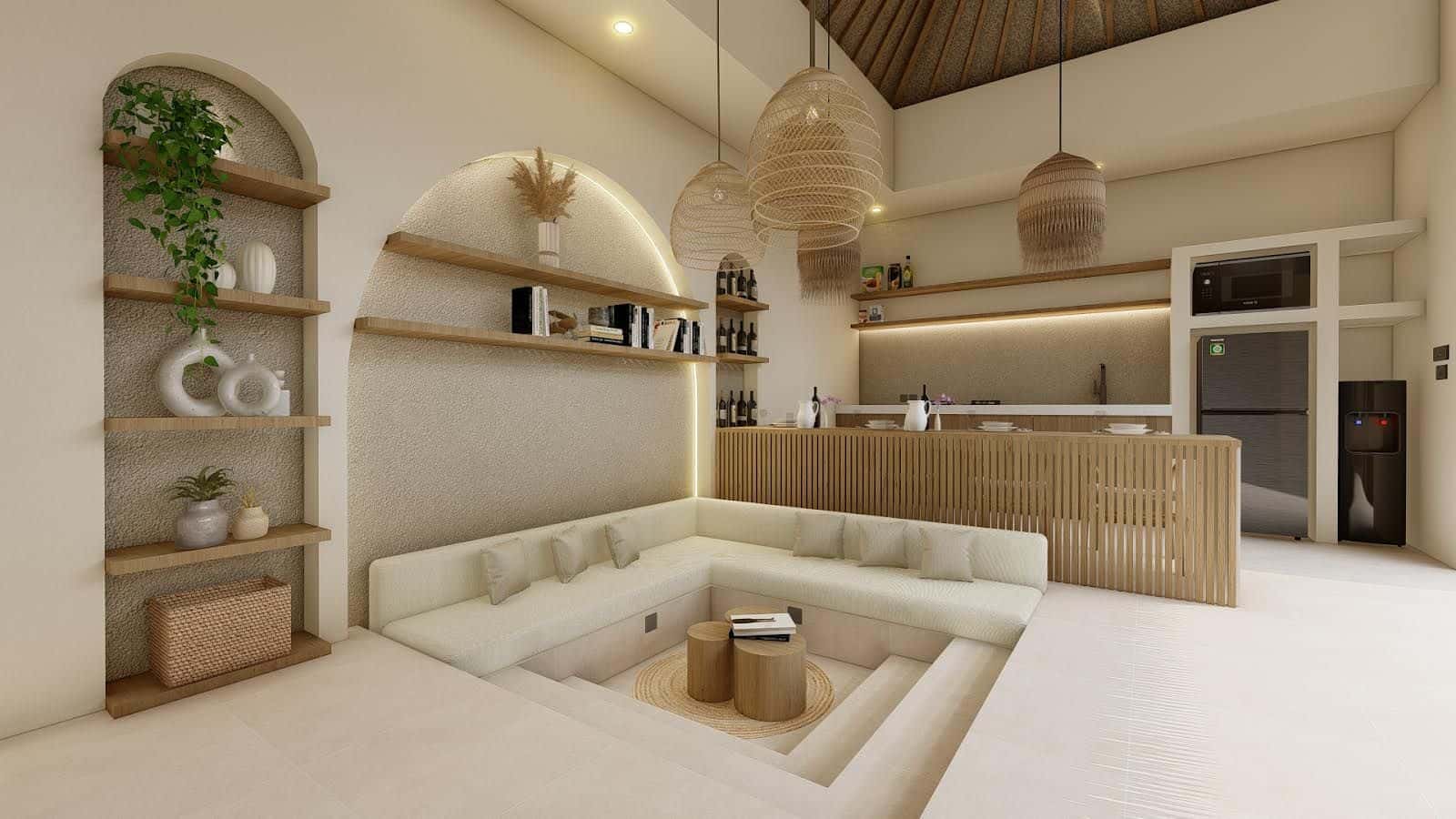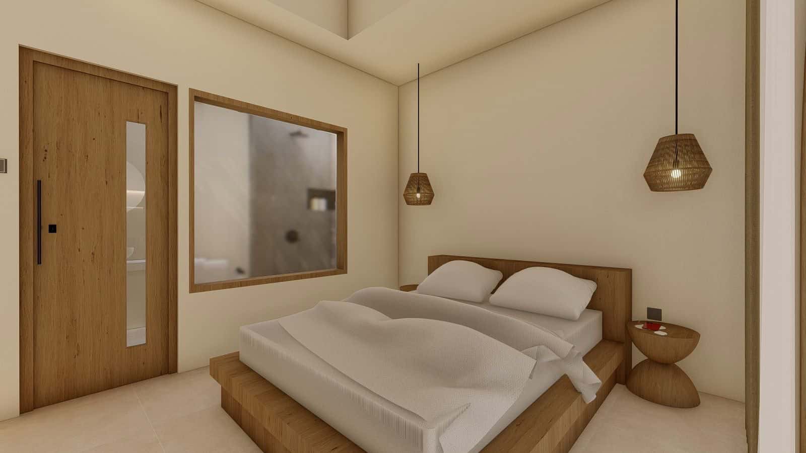 The villa sits on a land size of 1.15 Are and boasts a build size of 77 sqm, scheduled for completion in January 2025. It features two spacious bedrooms and two bathrooms, all fully furnished with high-quality materials for your convenience. The open living room, designed to embrace the natural light, seamlessly connects with a cozy garden, creating a relaxing and inviting atmosphere.