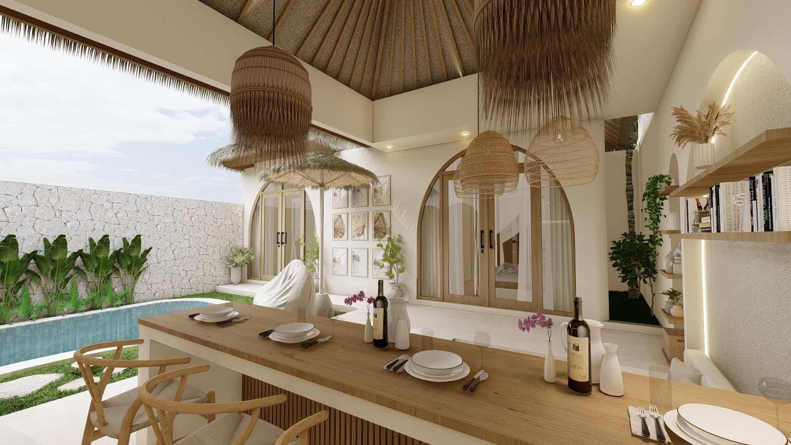 Located in the heart of Uluwatu, this modern tropical villa is priced at 220K USD. It offers a lease period of 30 years with an extension option available at market price.
