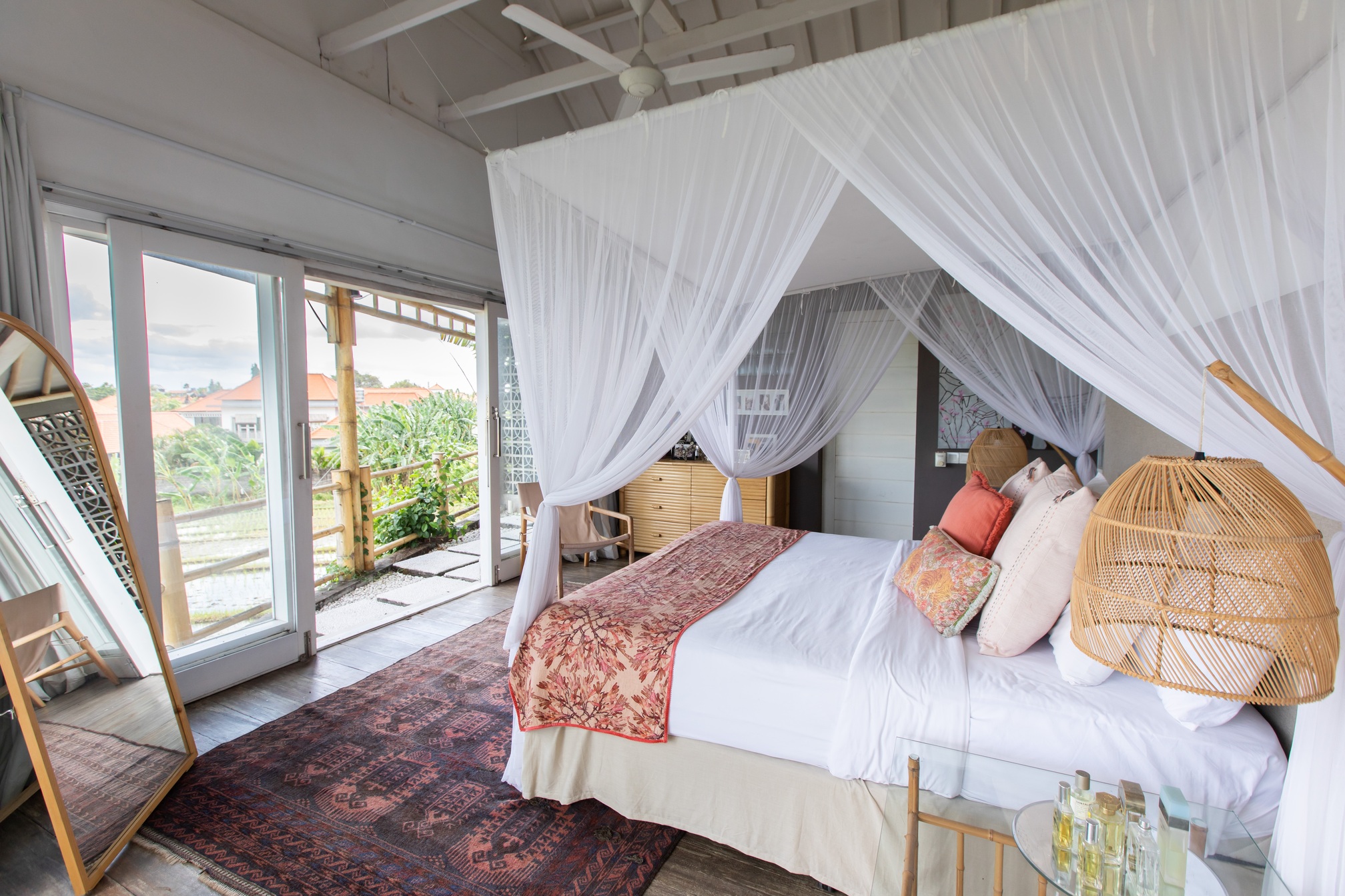 Spanning across 500 sqm of land and 300 sqm of build, this fully furnished villa features 3 bedrooms and 3.5 bathrooms. The villa’s design embraces natural light and space with high ceilings and sliding windows, allowing fresh breezes and natural light to fill the living spaces. The villa boasts a spacious living room. Adjacent to this, you’ll find a fully equipped kitchen thoughtfully designed with modern appliances, complemented by the outdoor dining area that overlooks the pool and the rice fields.