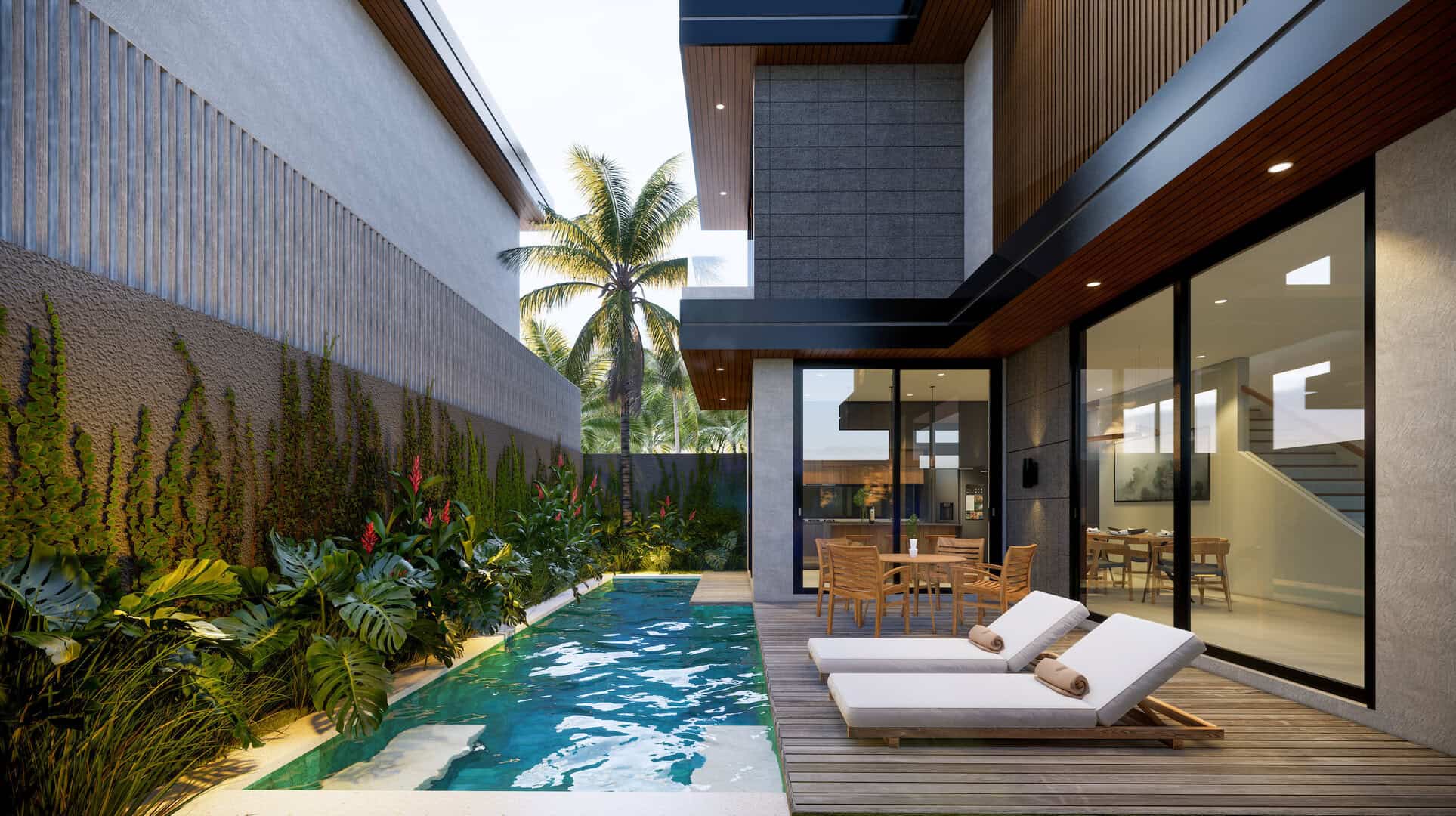 Built to the highest standards of boutique design, our villas use premium natural materials and emphasize functionality and aesthetics. Enjoy the outdoor area with its swimming pool to relax as it should be in Bali. Available in two configurations: a villa of 96 sqm with a land of 139 sqm or a villa of 126 sqm with a land of 235.5 sqm, they combine contemporary design and generous spaces to meet all your expectations.