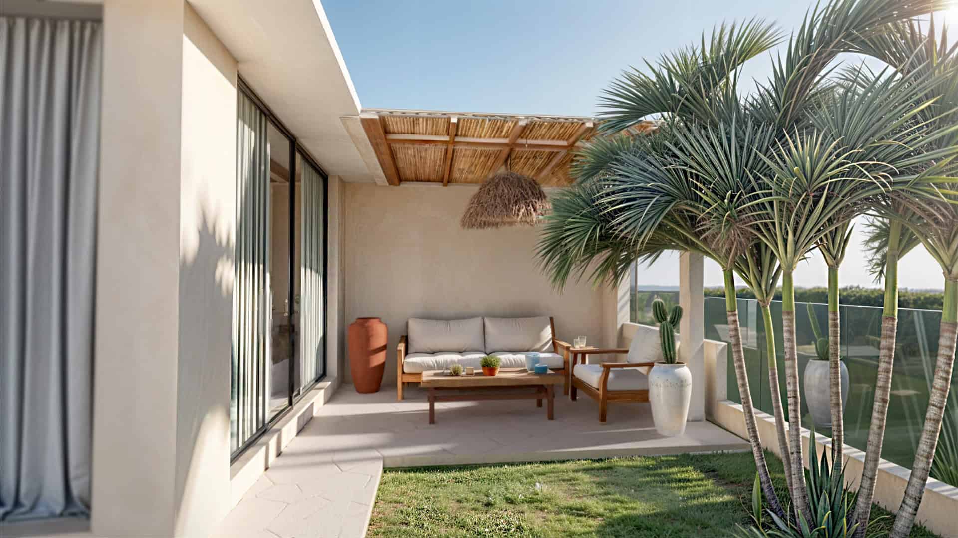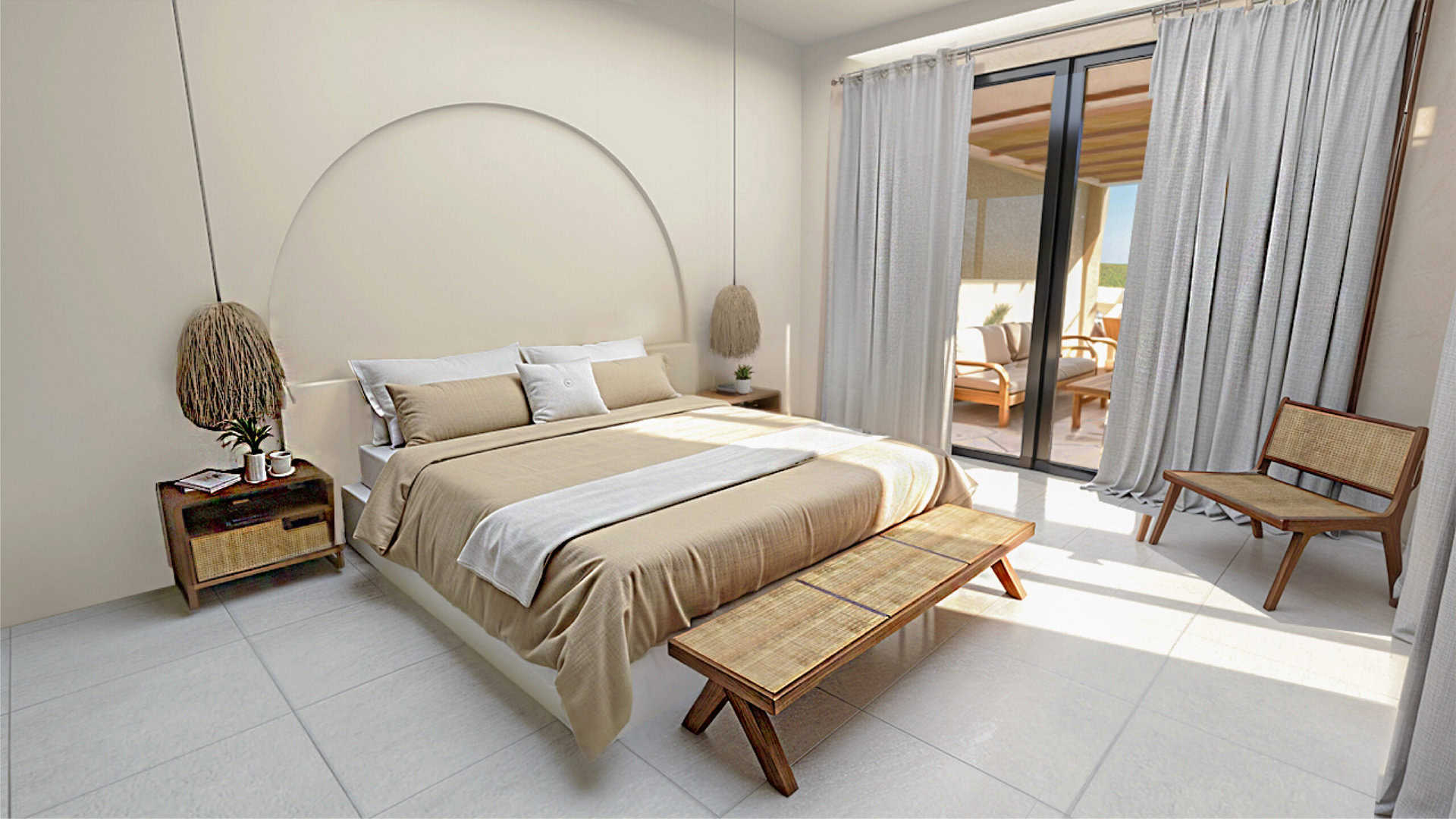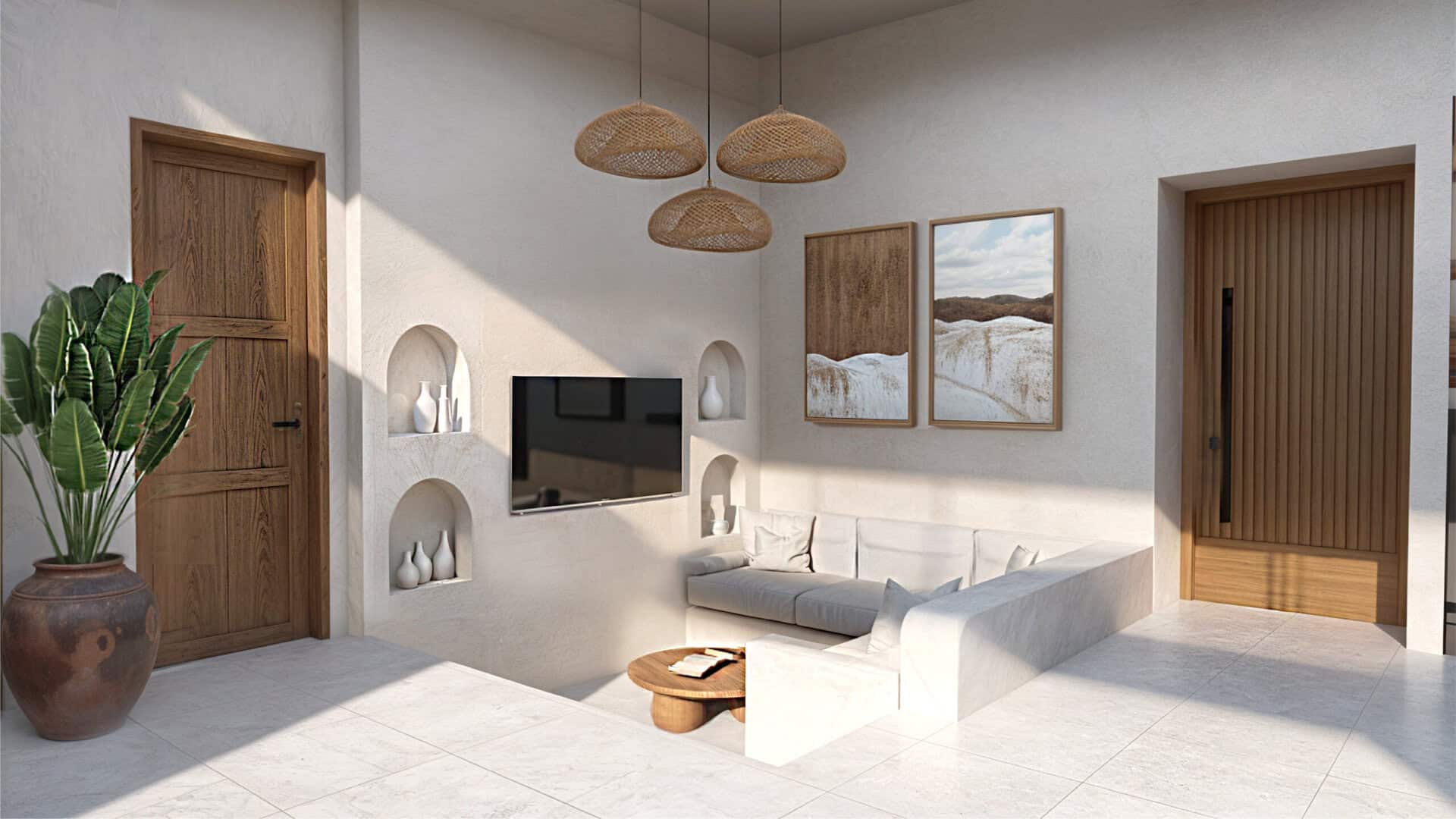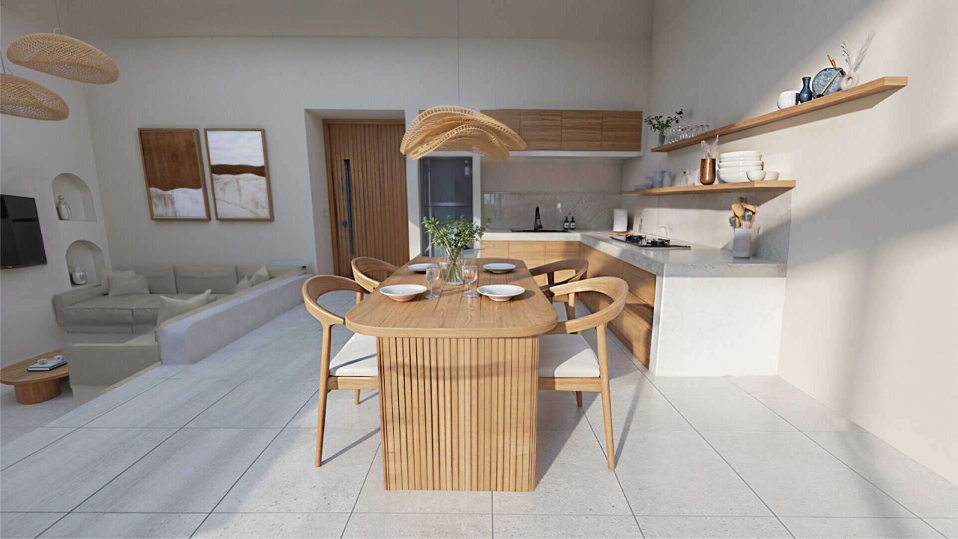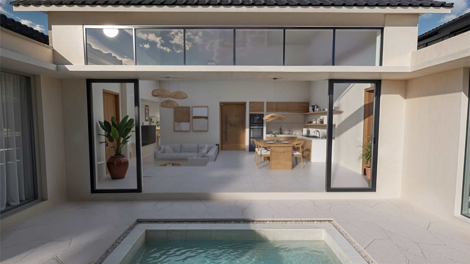 Step into this sanctuary where you’ll find elegance harmonizes with comfort. Featuring modern-tropical interiors, two bedrooms with ensuite bathrooms, and complete furnishings, this villa offers a serene retreat. The heart of the home includes a fully equipped kitchen and a cozy dining area perfect for shared meals. High ceilings and expansive windows flood the space with natural light, creating a bright and airy atmosphere.