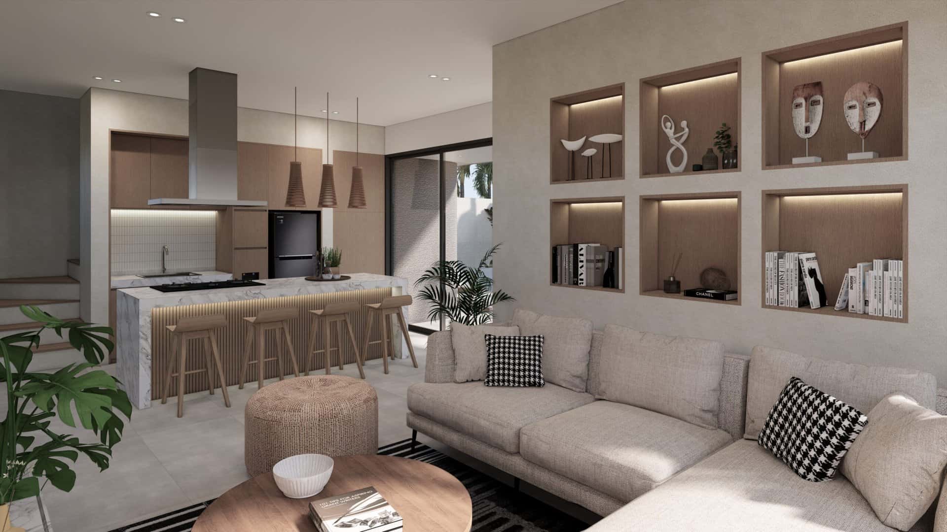 The contemporary design with elegant wooden accents